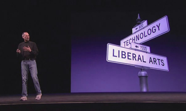 在 iPhone 4 发布会上 ( WWDC 2010 ) Steve Jobs 第二次以这张图片结束,第一次是在1月27号的 iPad 发布会上。Steve Jobs 说 Apple 不只是一家技术公司,而是追求技术和人文艺术的结合。