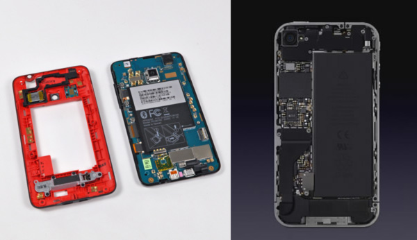 从这张图你可以看到什么,iPhone 4 和 HTC Evo 4G,两种不同的设计,两种不同的结构设计,一种是传统的手机结构设计虽然从视觉上看它也是漂亮的,一种是突破性的工艺之美,还可以看到什么?可以看到一个是分工,一个是合作,从 HTC Evo 4G 上似乎可以隐约看到从设计师的设计到工程师的结构设计这一有着先后的工作流程,从 iPhone 4 很难看到设计师和工程师之间的先后关系,看不到明确的分工,比如这部分是我做的,那部分归你管,而是看到了一个整体。