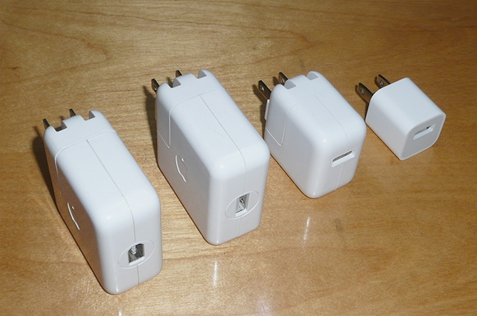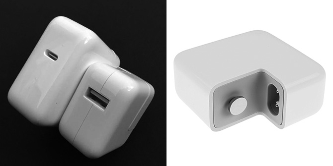 这是 Apple 的 29W 的 USB-C 电源适配器(上图左来自这,图右来自这),与 MacBook (视网膜屏幕版)一道在 2015 年推出。