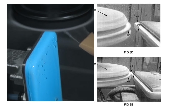 上图是 iPhone 5c 和 MacBook 的打磨抛光程序,因为 MacBook 的轮廓是一个大弧形,所以打磨就需要适配产品的形状,否则虽然将分模线等瑕疵打磨了,但会改变产品的形态,让其高光和发射等光学视觉表现也发生了变化,图右来自于 US 20110081839。
