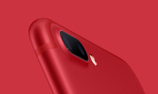 然后就是这个红色版的 iPhone 7 (PRODUCT)RED,不再像金色或者玫瑰金版本一样使用坦白的“白色”天线分割条,而是匹配的机身的红色。