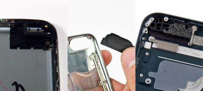上图来自 US 8472203。第一代 iPod touch 使用的塑料盖片是从外向内装,靠着卡扣来张紧安装。而此后的 iPod touch 的天线窗口塑料盖片都是从内向外安装,第二代和第三代的 iPod touch 的塑料片可以看到一个与机身相匹配的凸起。iPod touch 上这些塑料与金属连接都是装配关系,亦是靠对制造公差的控制来追求尽可能小的缝隙。