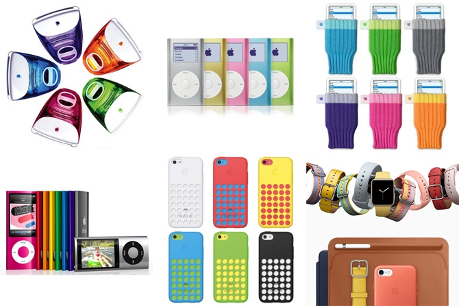 上图是从 Steve Jobs 回归后的 Apple 产品选择出的彩色代表。
