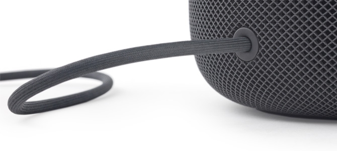 HomePod 的电源线按一些评测视频所说,它外层材质与机身的网布材质一样,维持了整体性,其他同类产品通常为黑色塑胶,它们通常并不在意这些细节设计,而这些细节是至关重要的。HomePod 的电源线通过一个塑胶环片与机身相连,这个环片有和机身一样的弧度,而两条边的圆角也塑造处一定的厚度感,似乎与硅胶碗底有相承关系。实际上电源线和塑胶环片是装配在一起的,整条电源线用大力是可以拔出的(但不建议拔出),可以看 9to5mac.com 的视频。HomePod 的电源线设计的考究之处并不只是这个细节,它位置的安排同样是有意思之处。本文提到的几个音箱,除了 Amazon Echo 2 之外,其他如 Google Home,Sonos One 和 Sony LF-S50G 的电源线都是插在机身的底部,在机身侧面与底面的交接边缘上挖出一个孔位,而相应的电源线的插头上作一些设计,在电源线插上机身后,可以让两个形态有一定的融合,比如弧面的一致。但是这种看似周全的设计其实是南辕北辙,而且处理地非常粗暴,破坏了产品的整体感,以一种躲藏的方式设法隐匿不加深思的设计。Google Home 的电源线是扁平的,设计师的想法应该和 Google 给出的官方图一样,可以完美地贴着桌面,让电源线不再干扰用户的环境,但如果去搜索用户发的照片,就会发现完全是两回事。如果去翻看用户贴出的 HomePod 的照片,电源线在里面并不完美,通常也是歪歪扭扭,隐藏不了,但比起其他几个音箱的电源线设计来说,HomePod 的设计更加顺畅,尤其电源线通过桌子或台子的边缘伸上来,而且不容易被牵绊。而最重要的是,它维持住了产品的整体性,以直白和看似粗暴的方式,通过细致的处理,优雅地解决了问题。