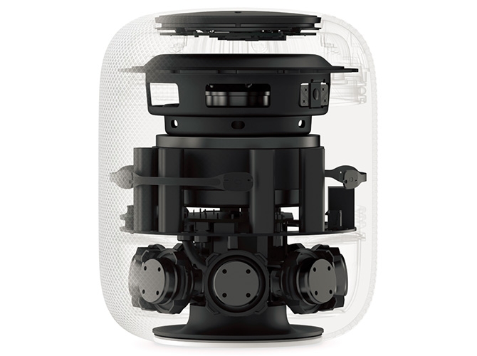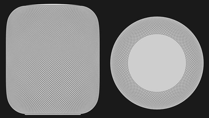 HomePod 的设计在 Apple 的网站上只有简短的介绍,以“Beautiful design with a purpose”(有目的的漂亮设计)为小标题,如果说追求词藻且意指暧昧的标题文字并无什么内容含量,那么在具体的介绍中总能传递出一些设计的主要特征。在这个简短介绍中提及了两个设计特征:一个是小于 7 英寸的高度,可以让 HomePod 可以放置家中任何地方;另外一个就是无缝网布,既是为了审美——任何角度都非常漂亮,也是为了声学——它对音乐来说是透明的无阻挡的。