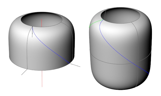如果从另一角度来思考,问题就变得很简单了,就是通过扭曲(Twist)来完成,绘制好一条基础线条,然后沿着柱体轴线作扭曲,那么问题关键在于怎么确定这条基础线条,以及确定曲线扭转的角度。