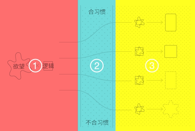 在我们这个设计生成的对抗模型图中,需要我们去研究的就是欲望、逻辑和习惯。